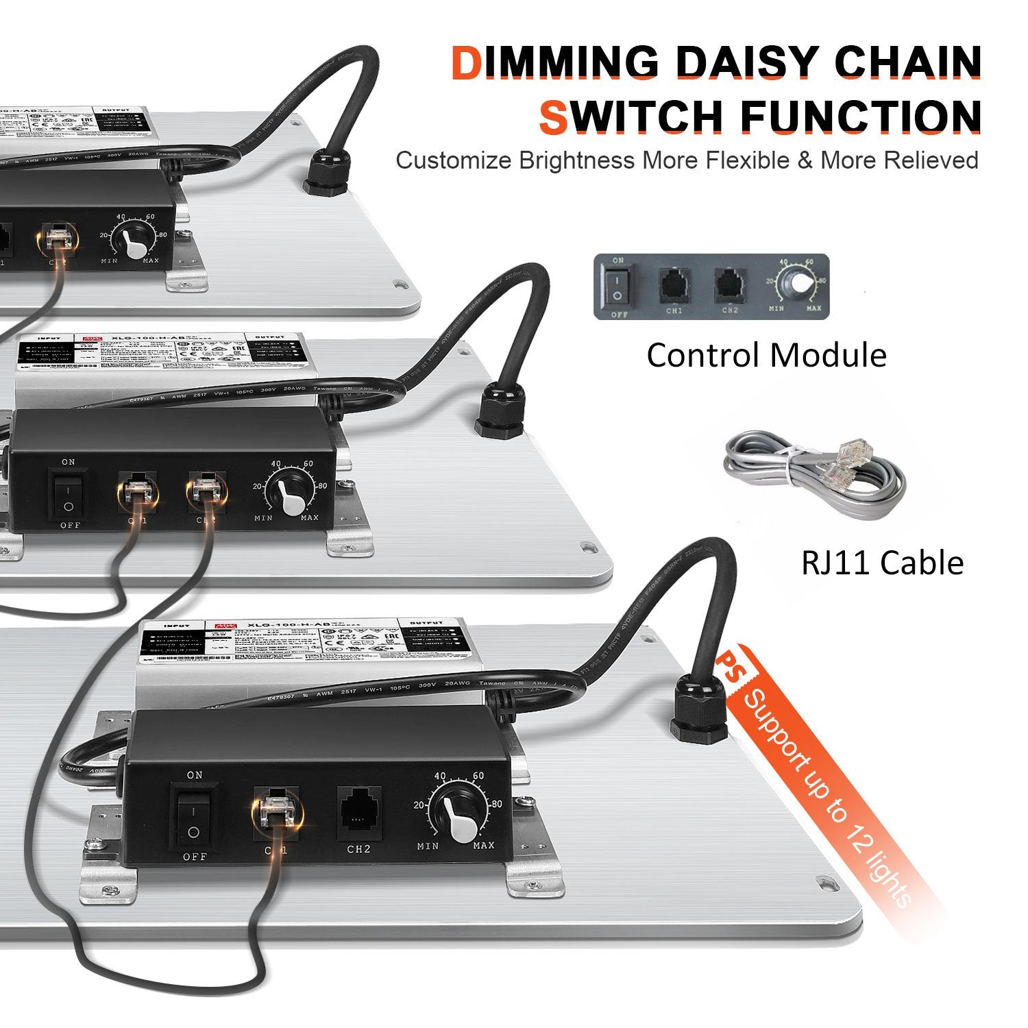 Customized Dimming Design: Upgraded SF series growing lights have a dimming knob and light switch. A single light can be adjusted the light intensity at liberty. Multi-light Connection with unified dimming especially beneficial for large areas of indoor growing and commercial planting.