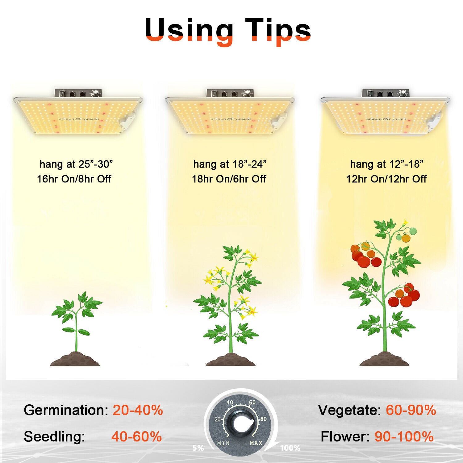 Value For The Money: SPIDER FARMER LED Plant Lights are often copied but will never have our quality or commitment, we provide 5 years of after-service of local maintenance center(US/CA/UK/DE). Make sure you purchase authentic Spider Farmer grow lights, really can give you need from high-quality grow lights – at a price that is affordable. For any questions, feel free to e-mail us and we will help you resolve them. Quality backed by our ironclad!