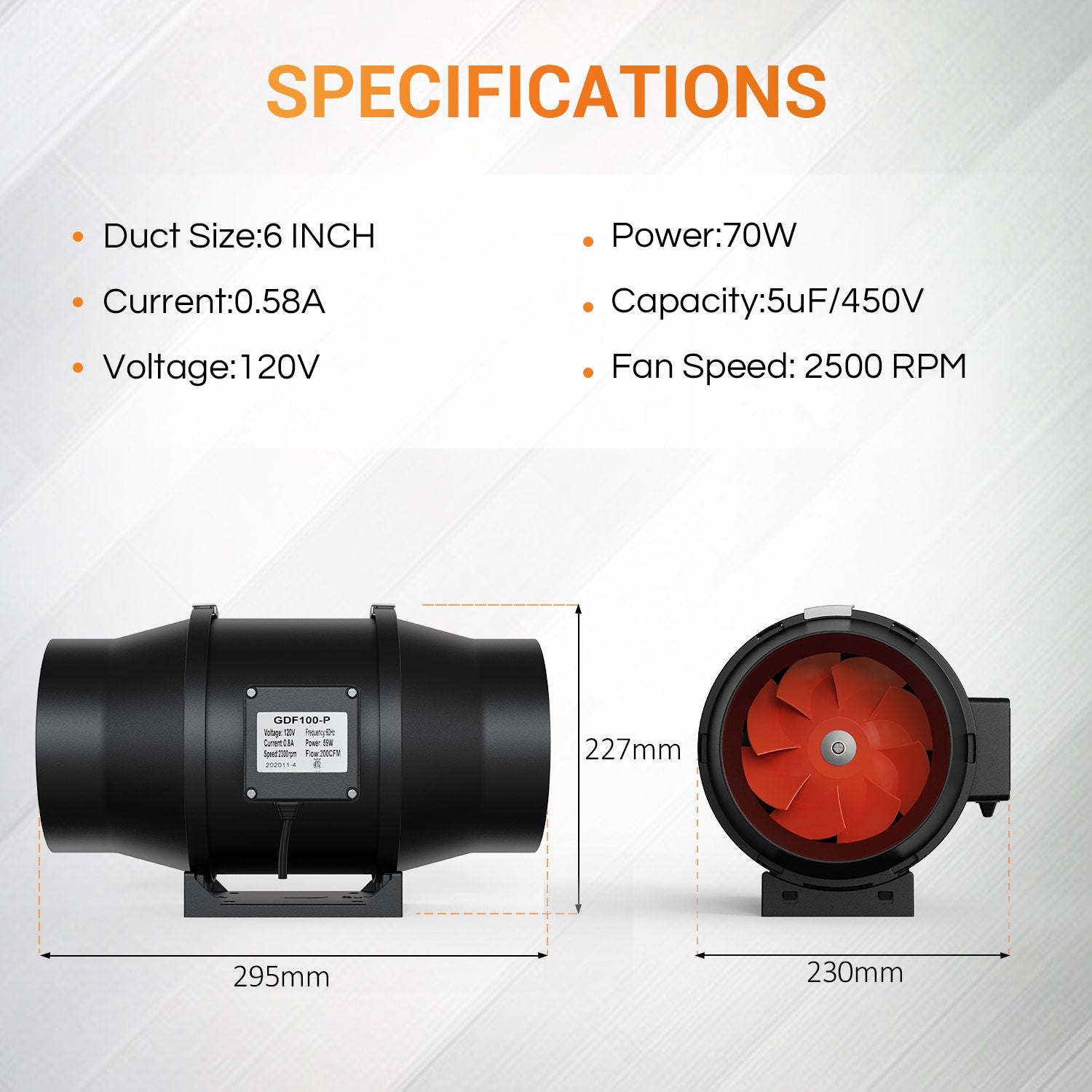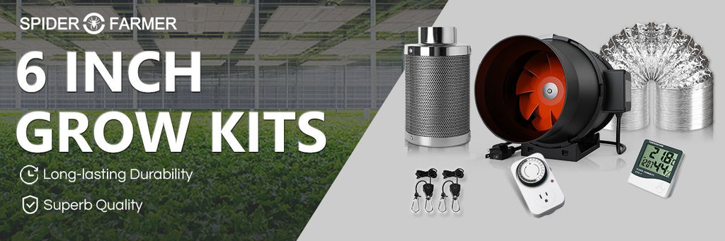 New Spider Farmer Grow Kits-6 Inch Inline Fan Air Carbon Filter 8 Feet Ducting Ventilation Combo