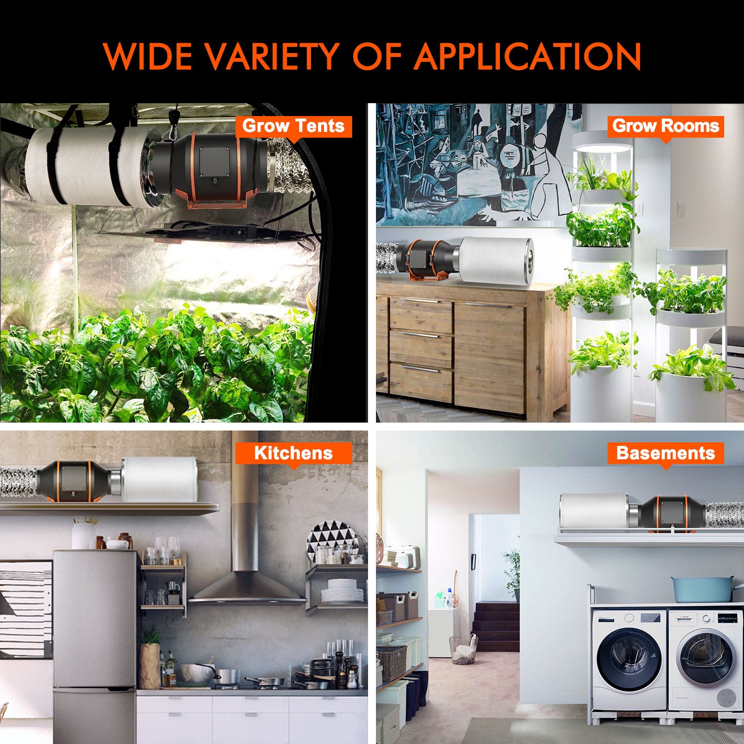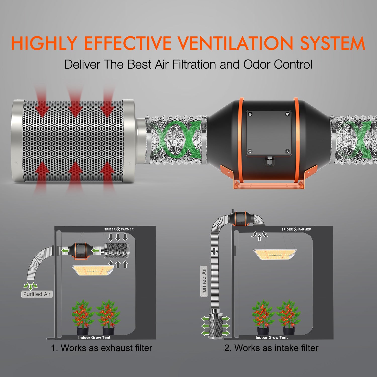 New 2021 Spider Farmer 4/6 Inch Intelligent Inline Fan Carbon Filter Combo Ventilation