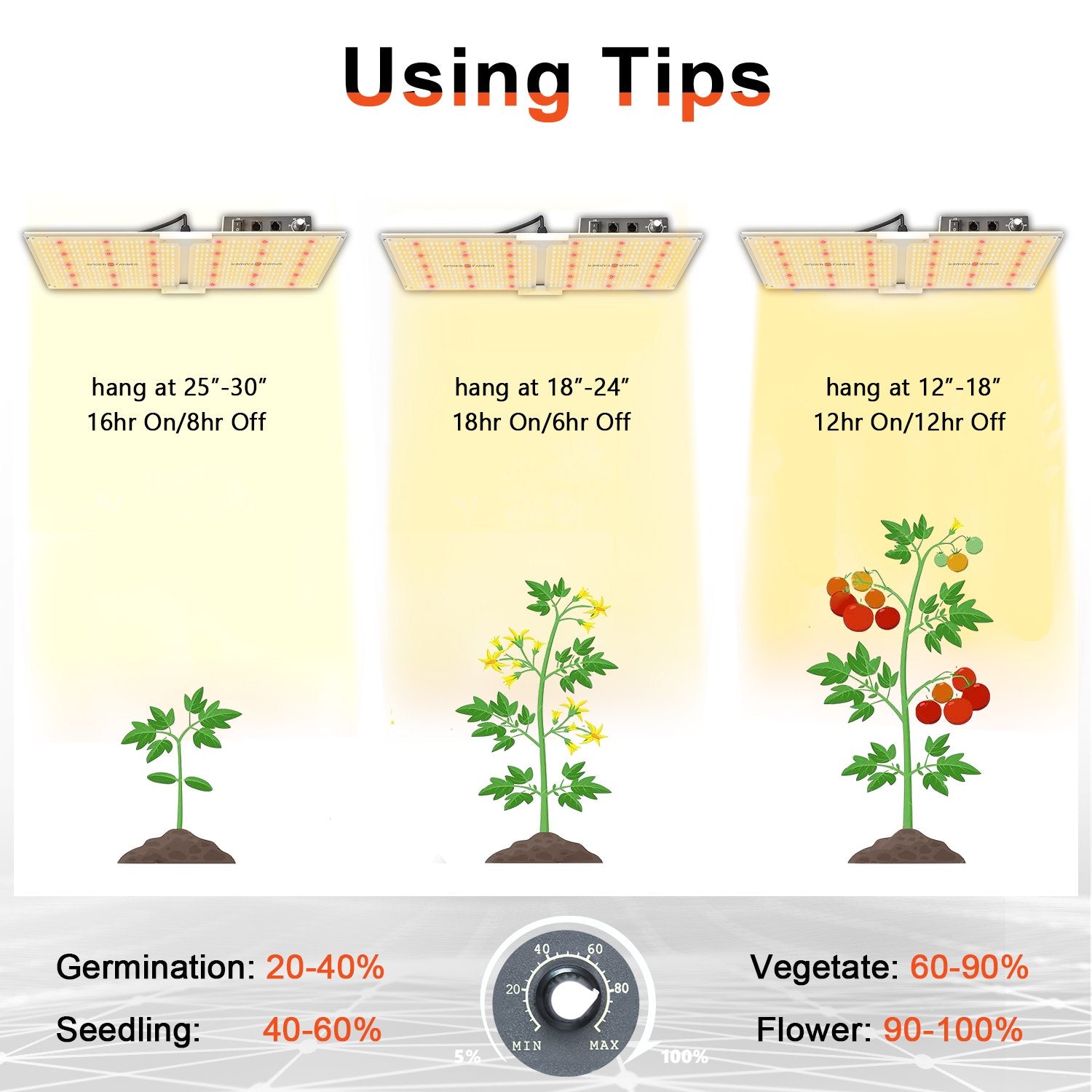 Customized Dimming Design: Upgraded SF series growing lights have a dimming knob and light switch. A single light can be adjusted the light intensity at liberty. Multi-light Connection with unified dimming especially beneficial for large areas of indoor growing and commercial planting.