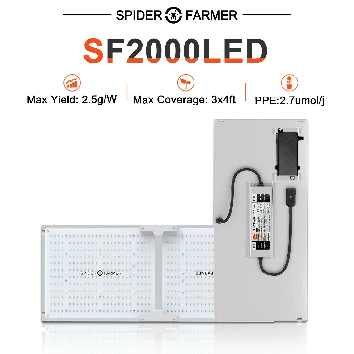 New Spider Farmer SF2000 LED Grow Light With Dimmer Knob Full Spectrum Samsung Diodes QB